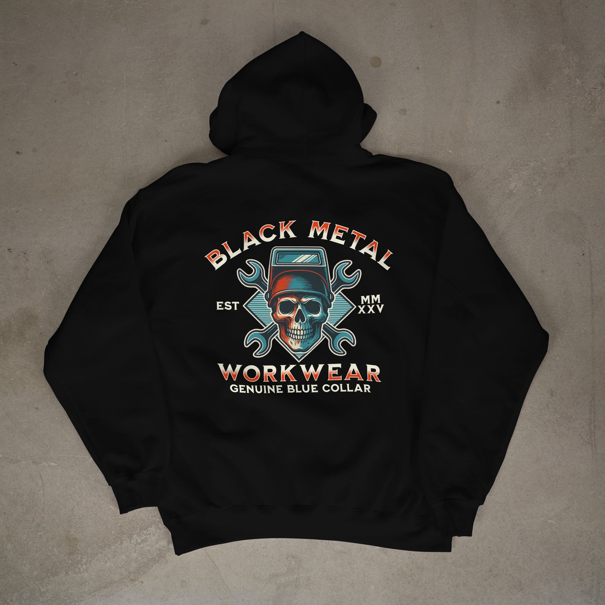Built from premium heavyweight cotton, lined with fleece and stamped with the skull and welder mark, this hoodie carries the grit of the trades. Warm, durable, and tough enough for long shifts in the cold, it’s made for the Blue Collar Bloodline.