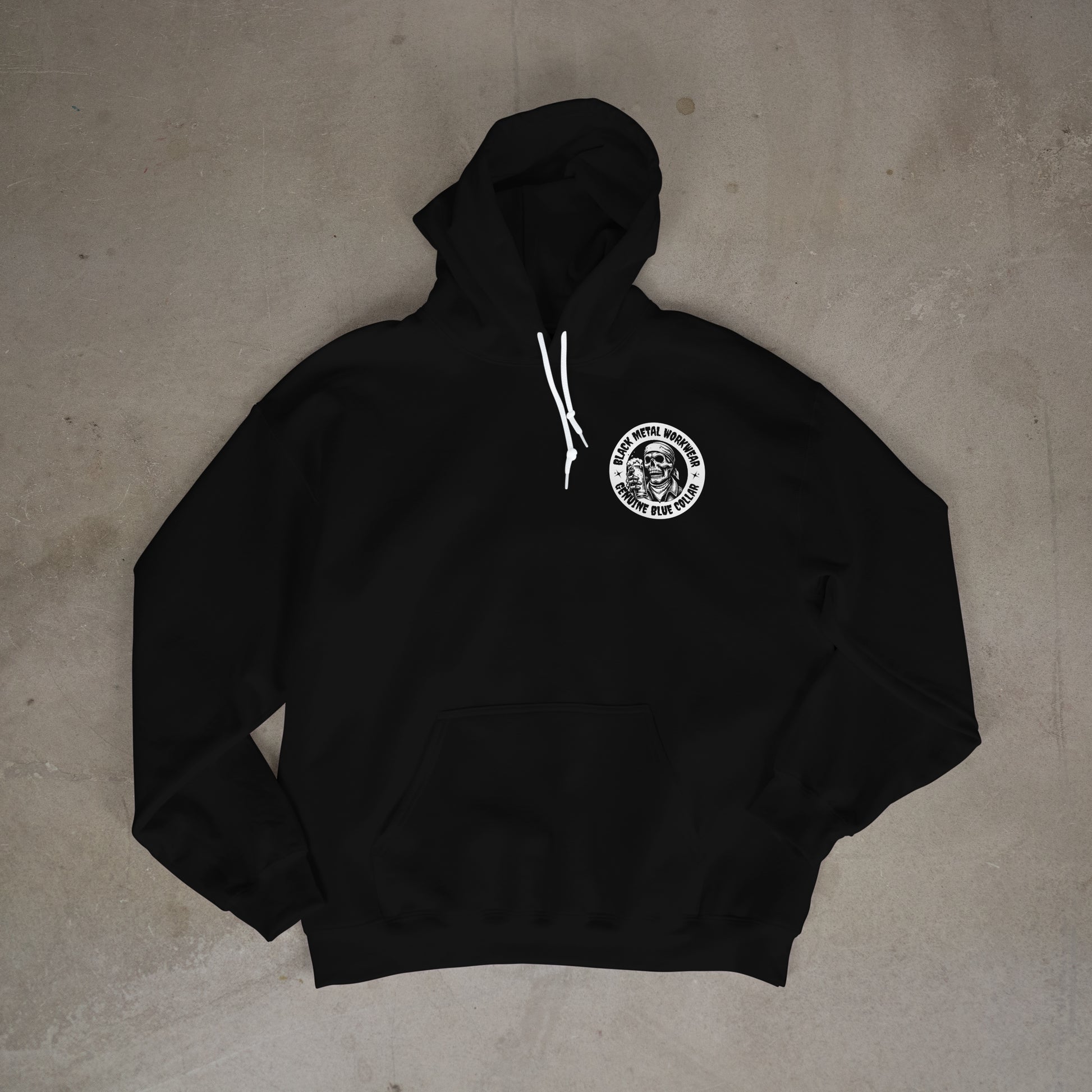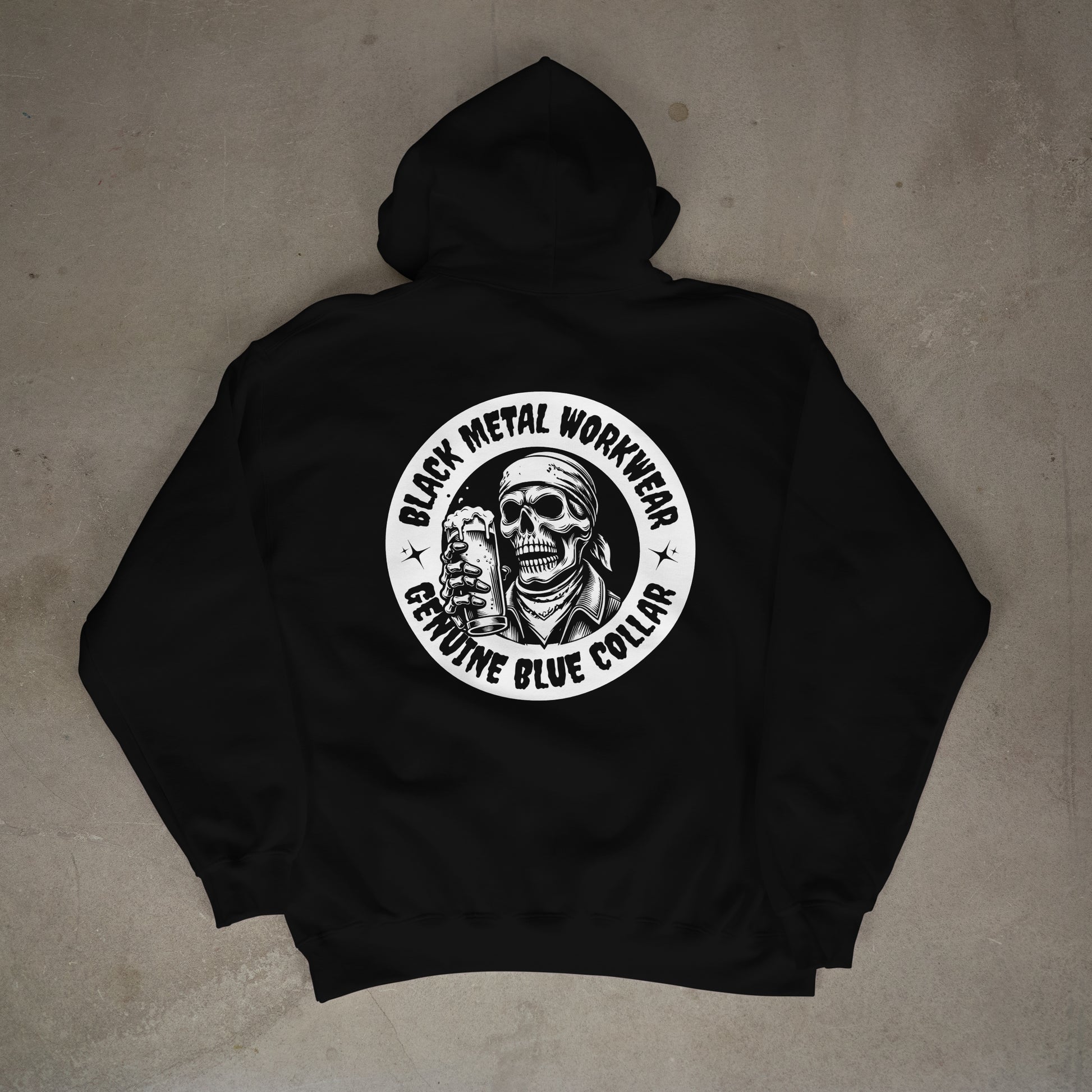 A hard day’s work deserves a hard pour. The Cold Bones Hoodie throws down a skull in a bandana raising a cold one. A tribute to the end of shift tradition that never dies. Built with heavyweight cotton and lined with fleece, this hoodie wears like armour through long shifts and cold nights. Made for the Blue Collar Bloodline.