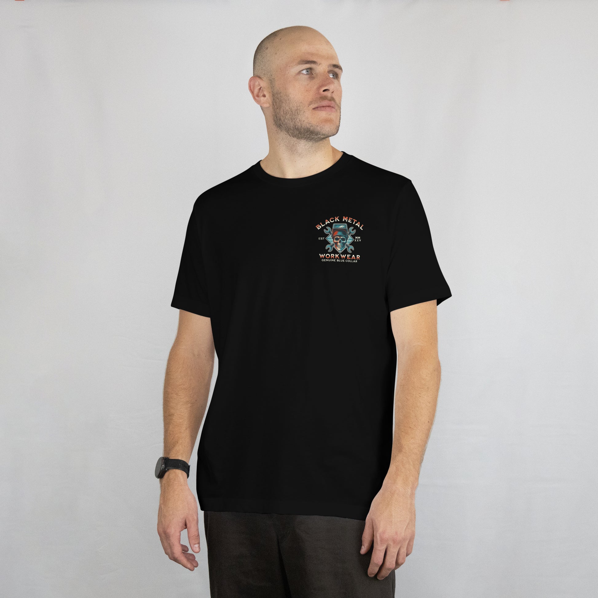 Stamped with the skull and welder mark, the Forged In Steel Operator Tee carries the grit of the trades. Crafted from a 60/40 cotton-poly blend with a softer feel, tighter arms, and a more fitted cut, this Operator tee moves with you. Lighter than the Workhorse, but still tough enough to handle the grind.