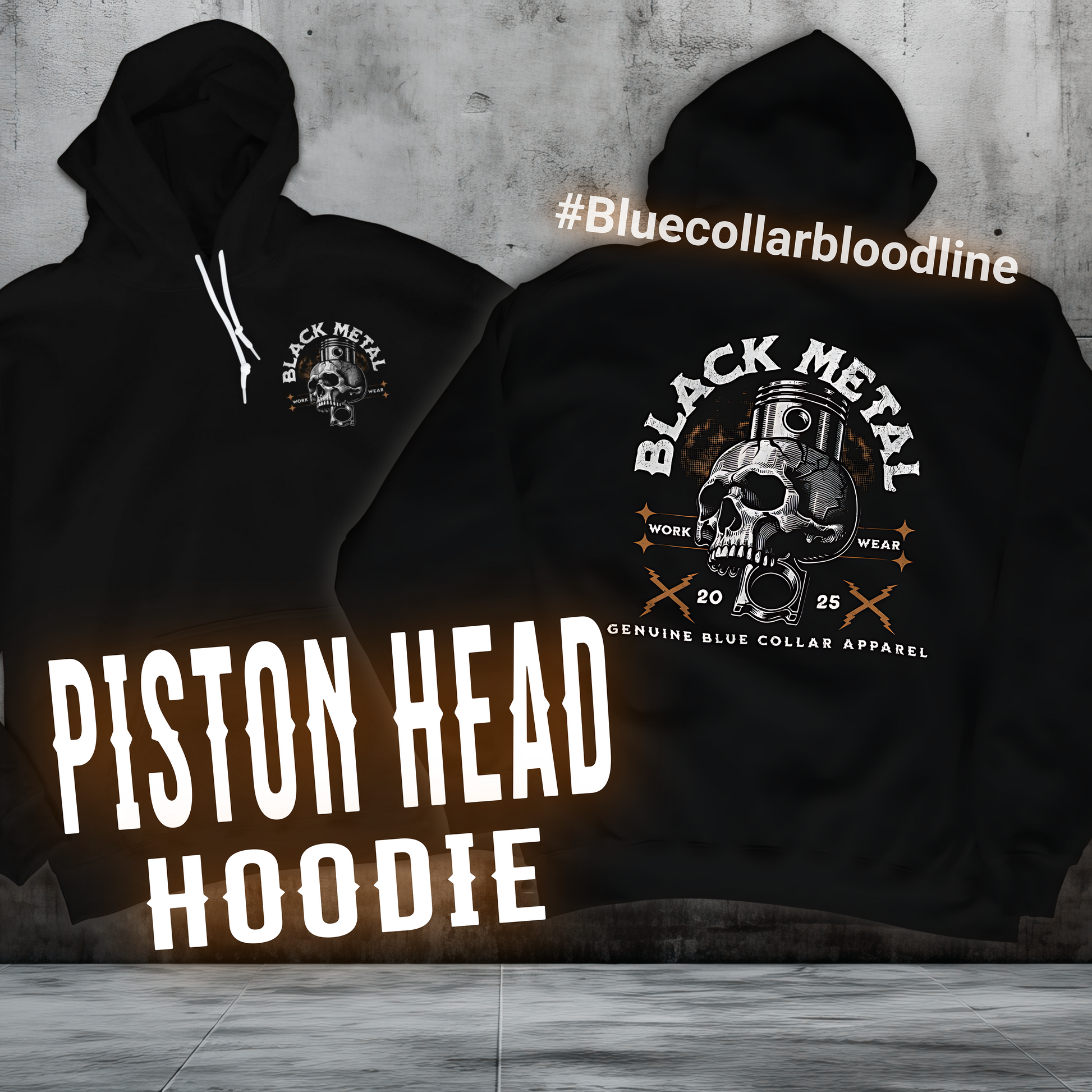Fueled by grit and forged in steel, the Pistonhead Hoodie carries the mark of the trades. Stamped with a skull and piston design, it’s a nod to the engines, machines, and the blue-collar hands that keep the world moving. Built with heavyweight cotton and lined with fleece, this hoodie wears like armour through long shifts and cold nights.